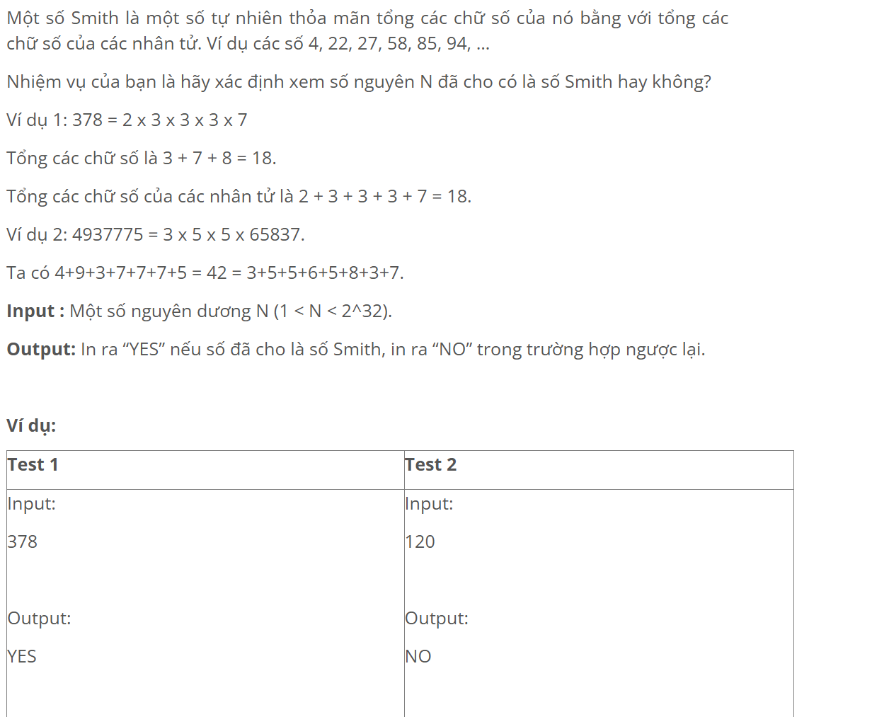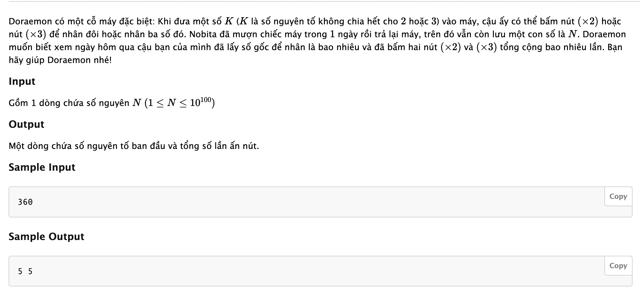 Dữ liệu nhập vào là một số nguyên dương duy nhất N ( 2 <= N <= 10^18)