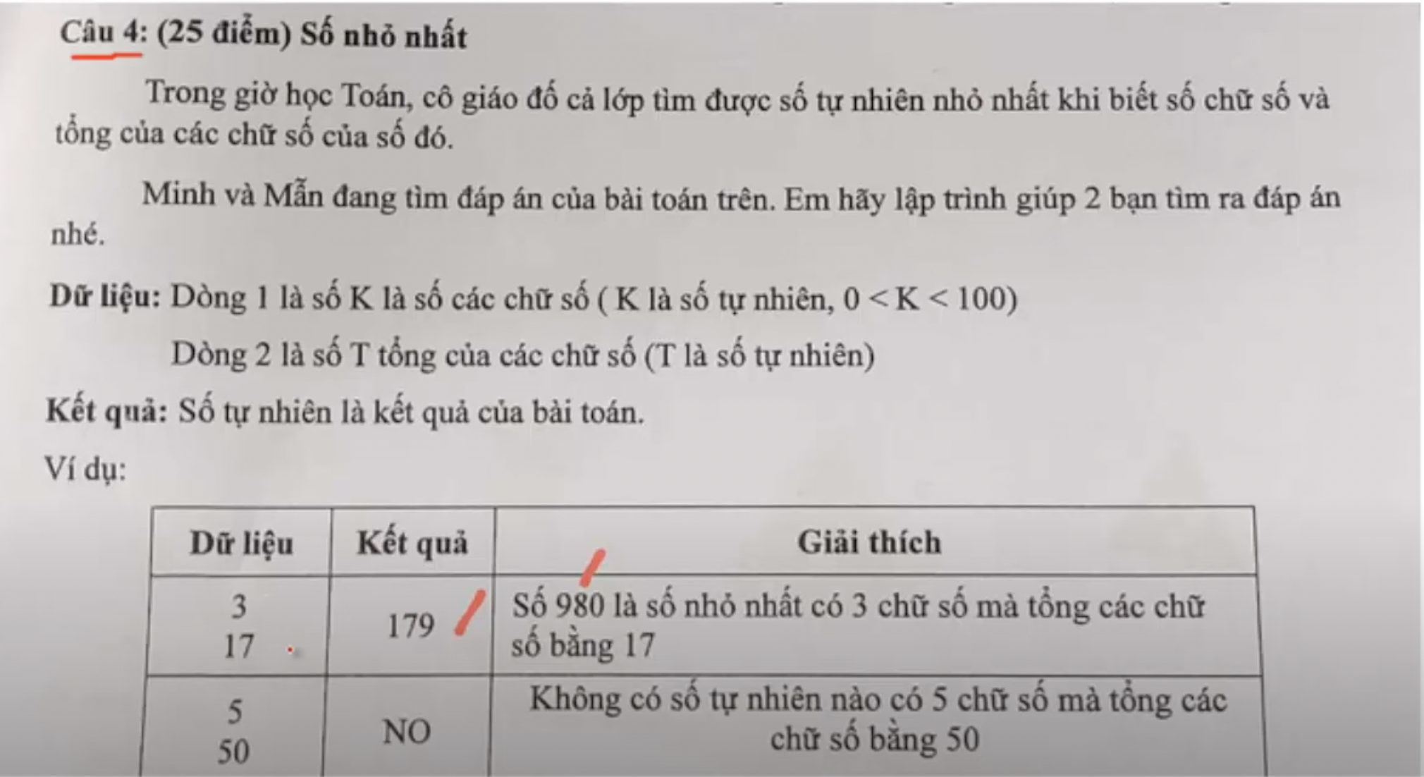 Lưu ý: K = 3 T = 17 Số nhỏ nhất là 179 không phải 980.