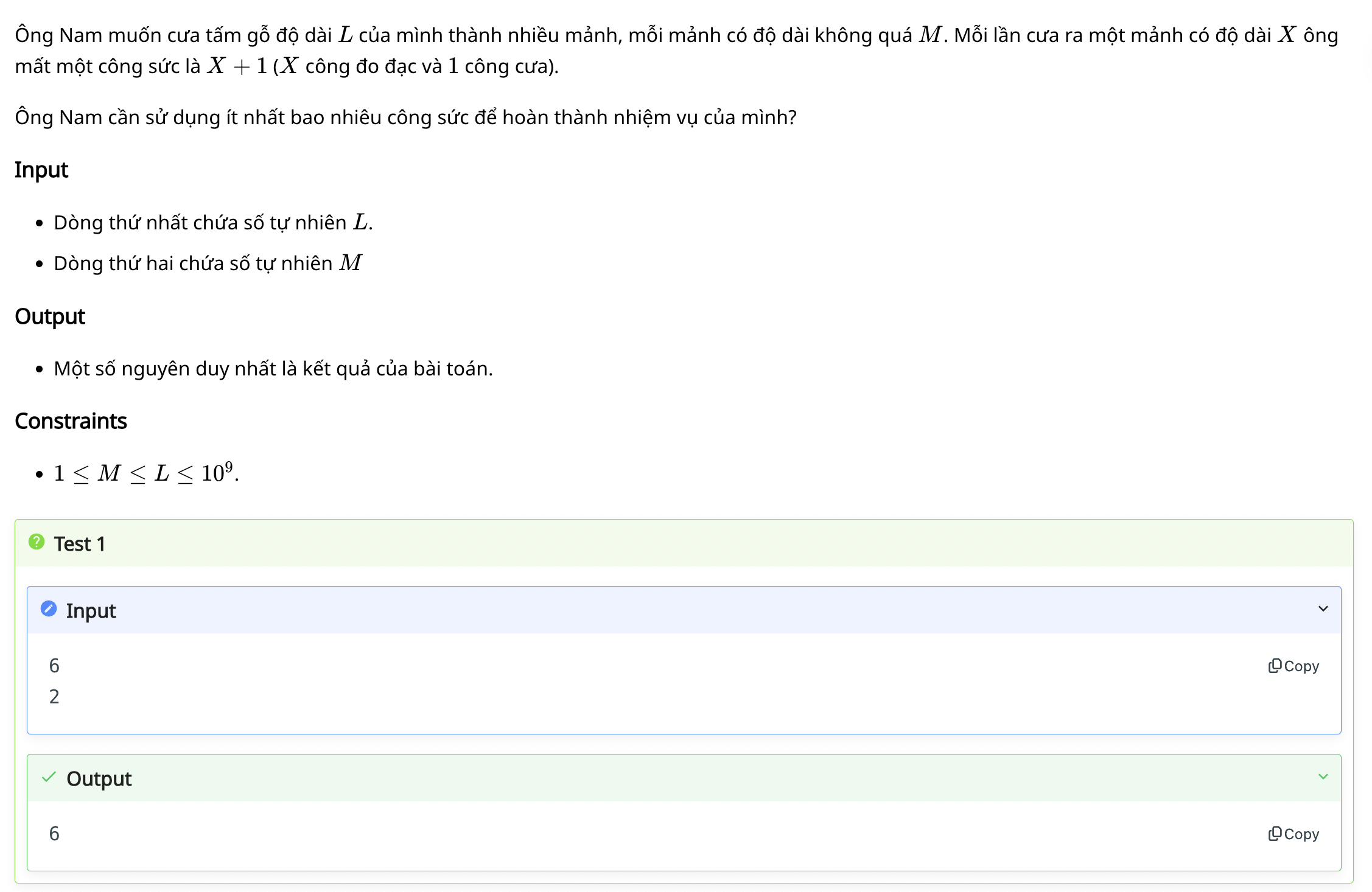 Dữ liệu in ra là một số nguyên dương là số lần đong nước